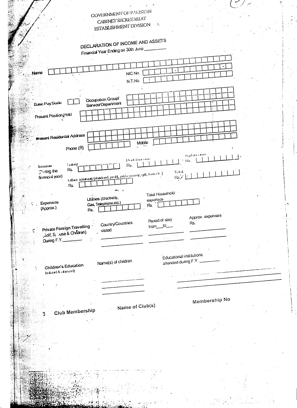 298x386 - Declaration forms should include assets, liabilities, cash at bank, cash in hand, outside financial interest, names of spouse and children under the age of 21 and their assets, mode and source of.
