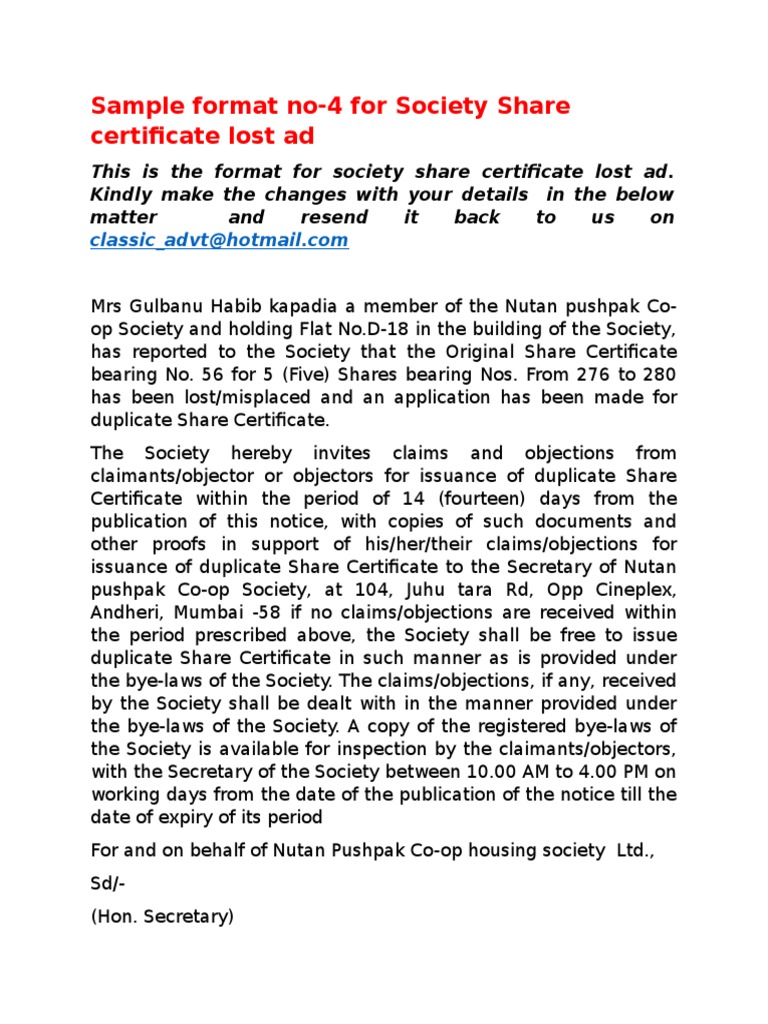 Share Certificates Lost Classic Advertising An employee will need salary certificate for different purposes like a share certificate template is a document which is issued to the shareholders for certifying his ownership in business shares.